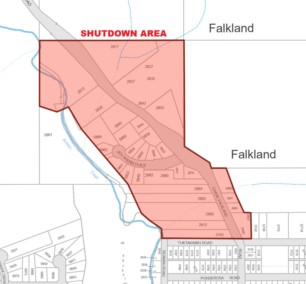 Below is the area affected by the water system shutdown.