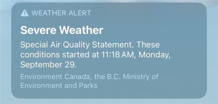 The statement on Air Quality Warnings BC encourages the public to limit their time outdoors and to stay hydrated. The next update will be tomorrow, Sept 30.