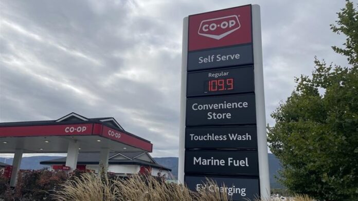 Gas prices in Salmon Arm have dipped this week, with some stations posting 109.9 cents a litre — well below prices in nearby communities where motorists are paying 10 to 20 cents more.