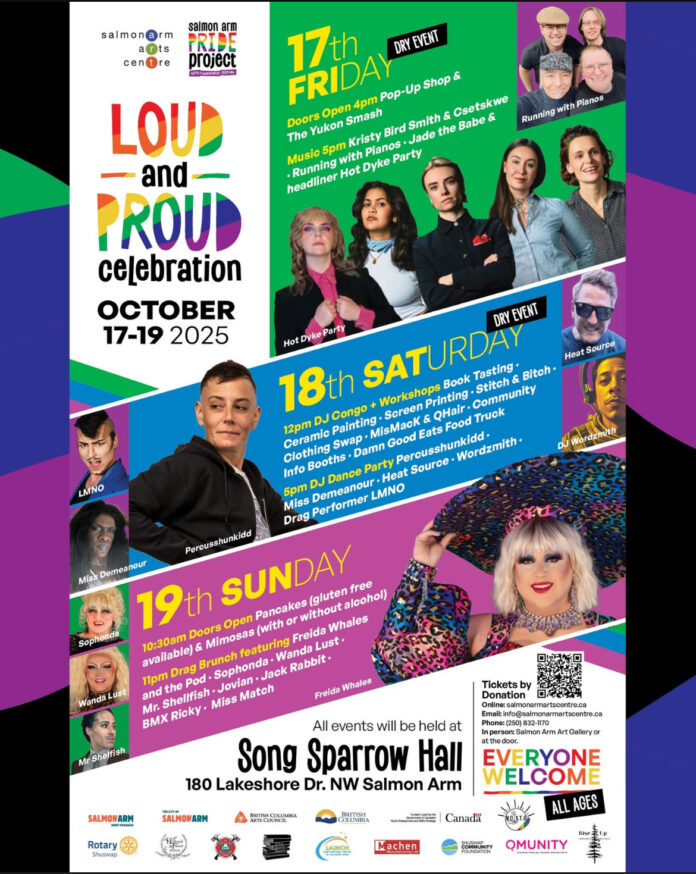 Hosted by the Salmon Arm Pride Project, the Loud and Proud Celebration kicks off today and continues throughout the weekend.